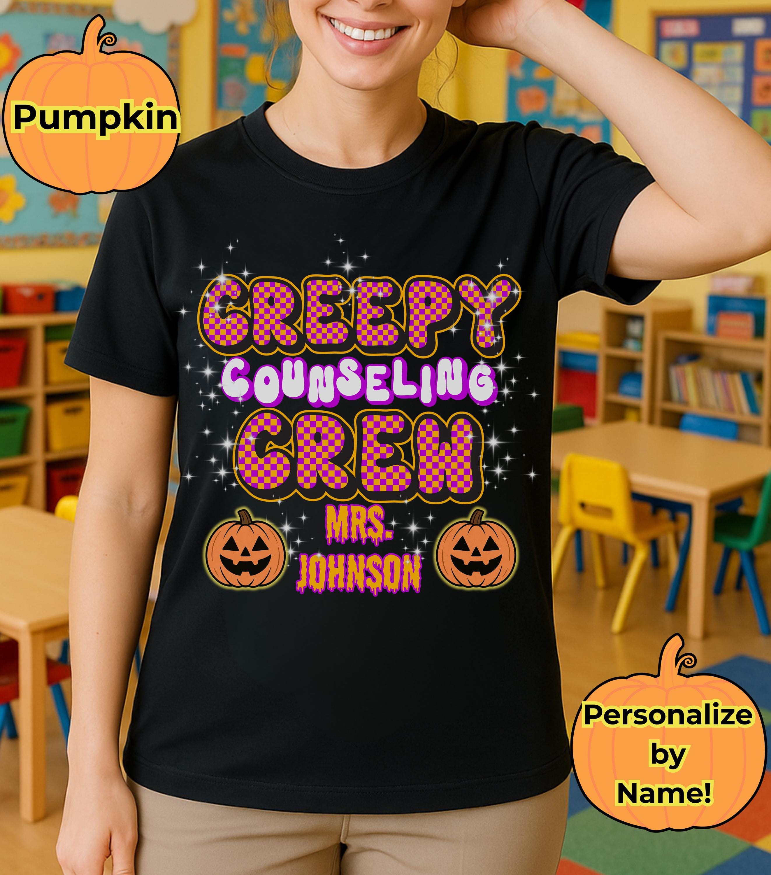👻 Creepy Counseling Crew – Personalized Halloween Shirt for Counselors