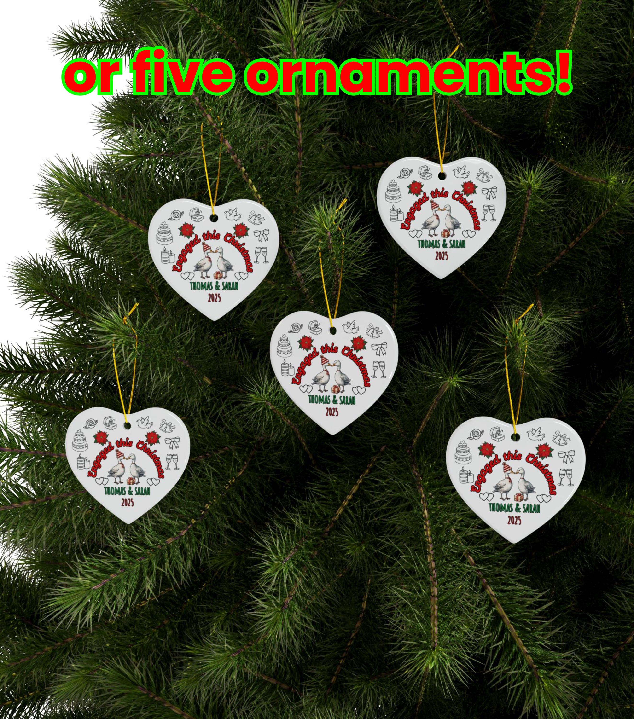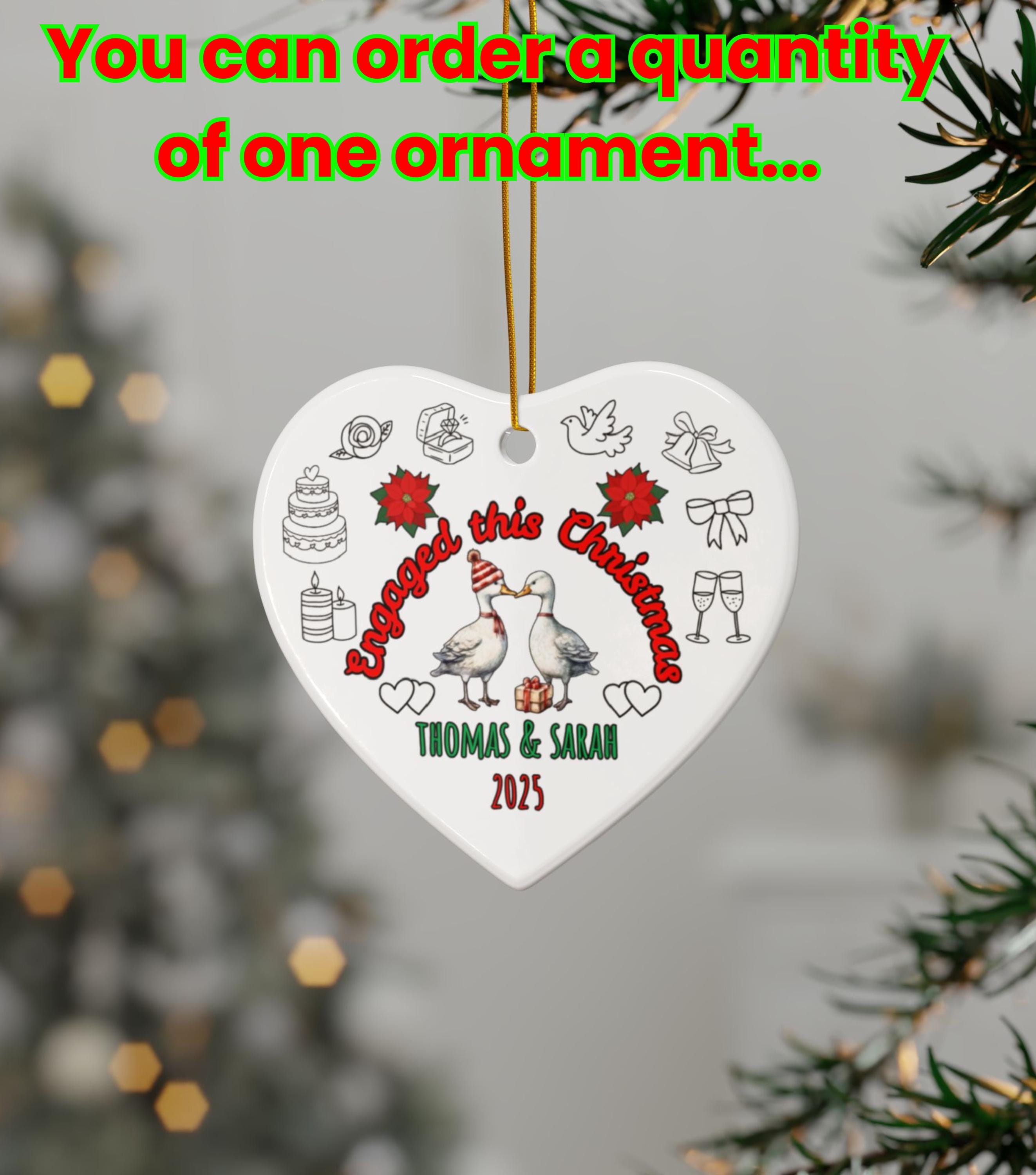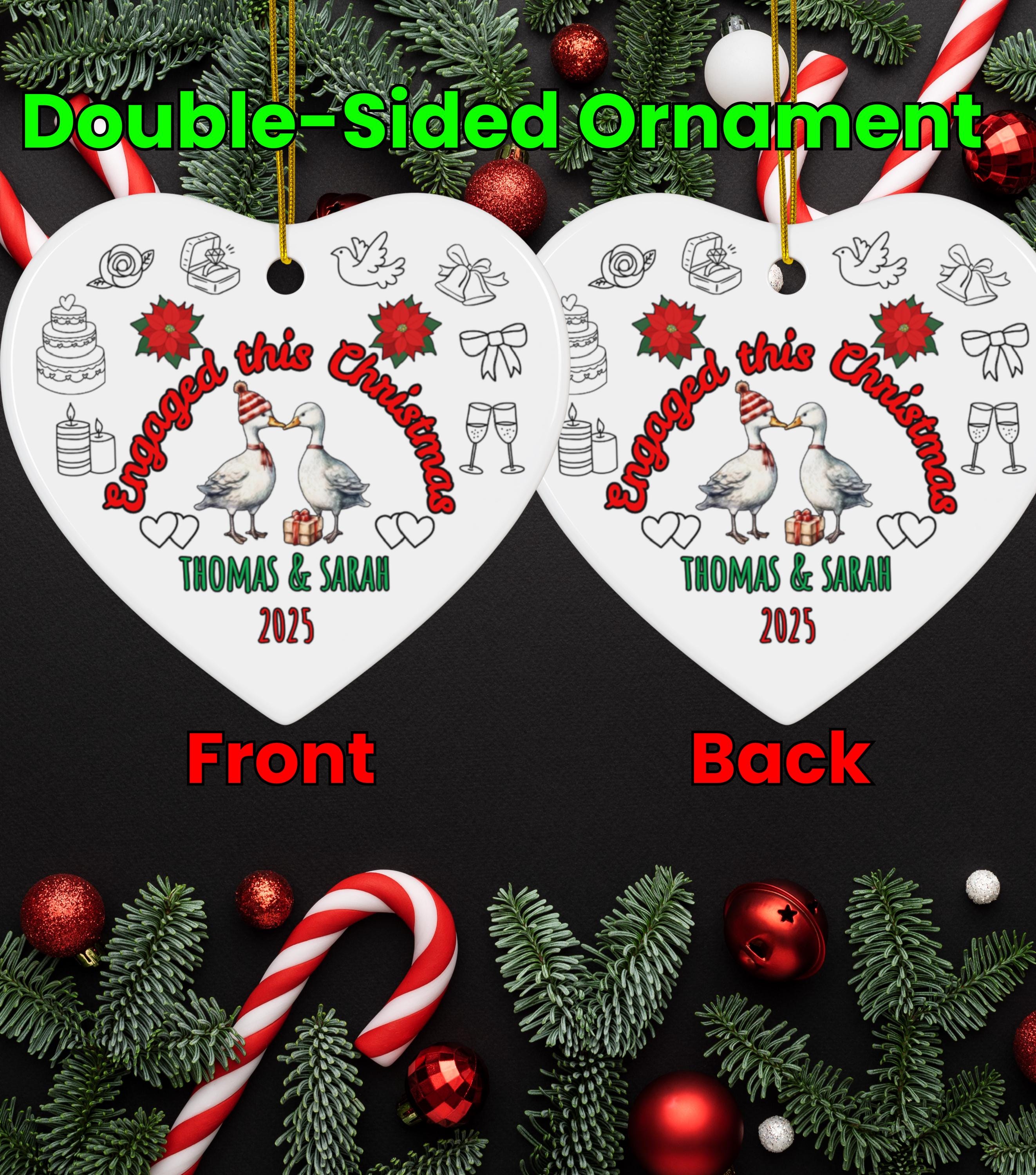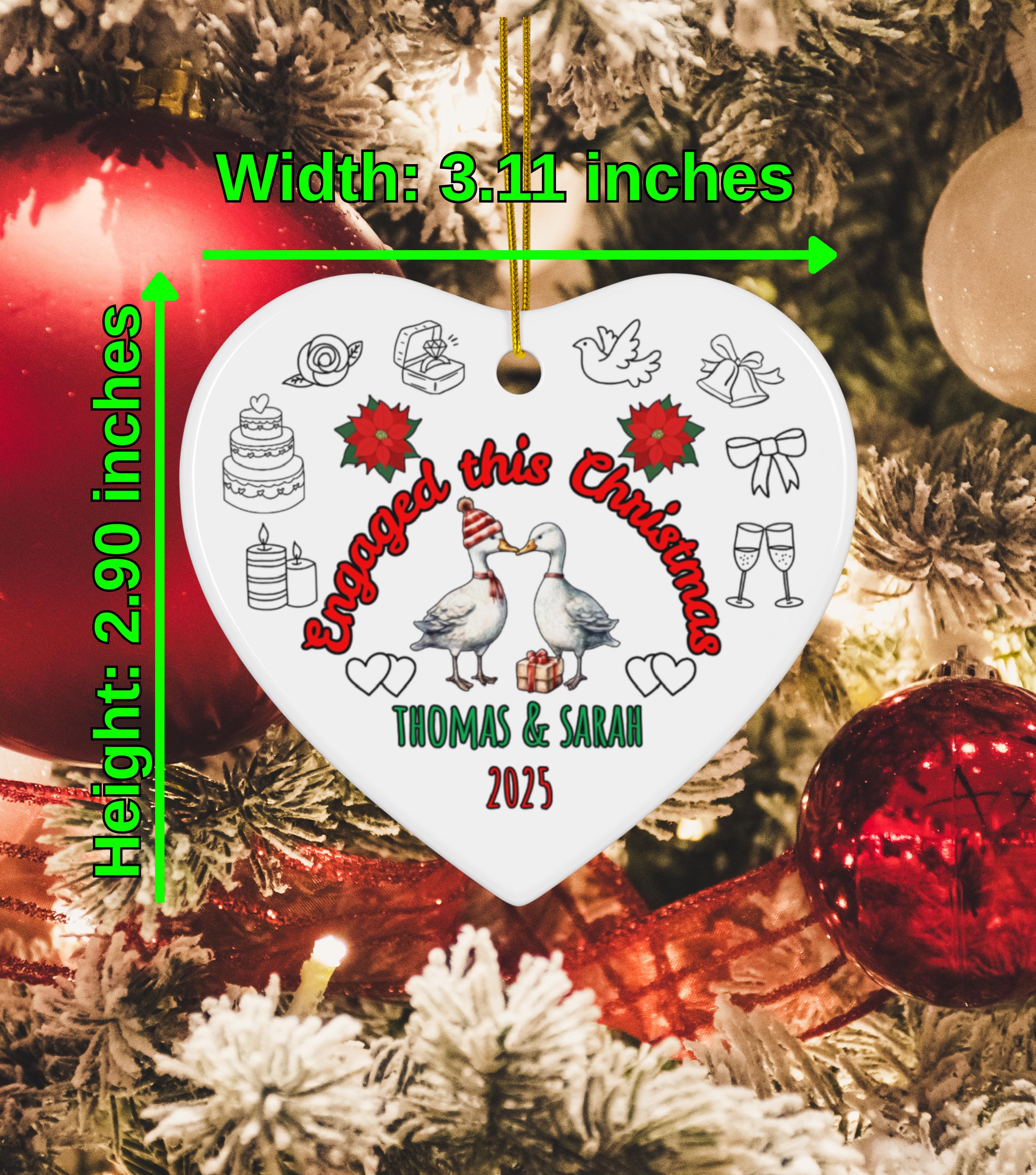 Double-Sided Goose Christmas Ornament, Heart-Shaped Personalized Goose Couple, Engagement & Wedding Keepsake, Ceramic Goose Fiance Ornament