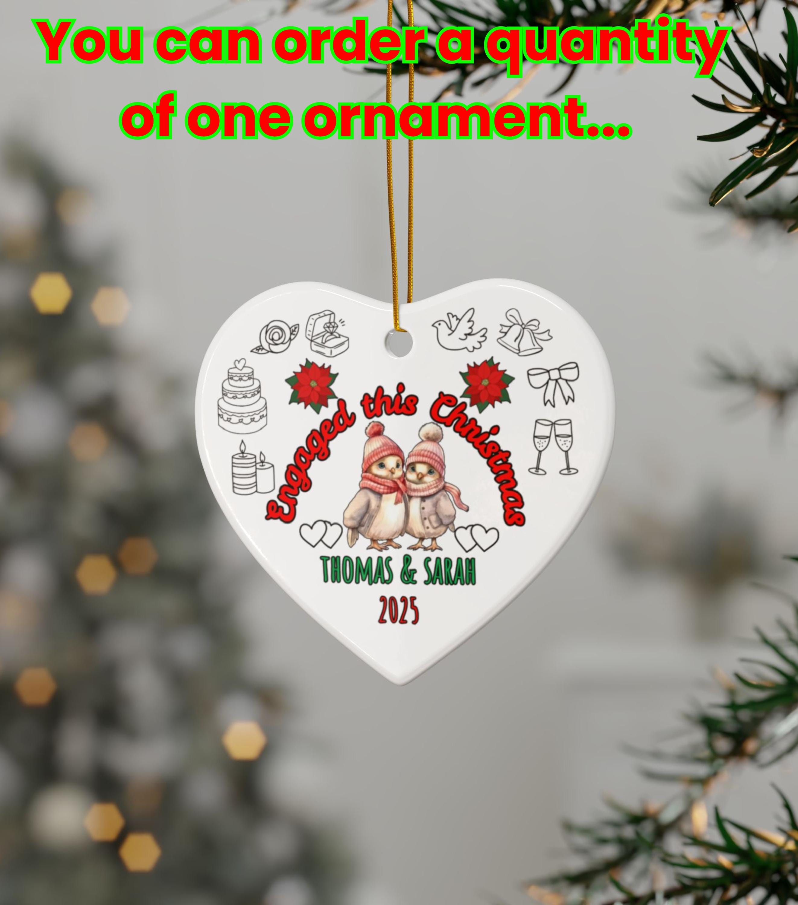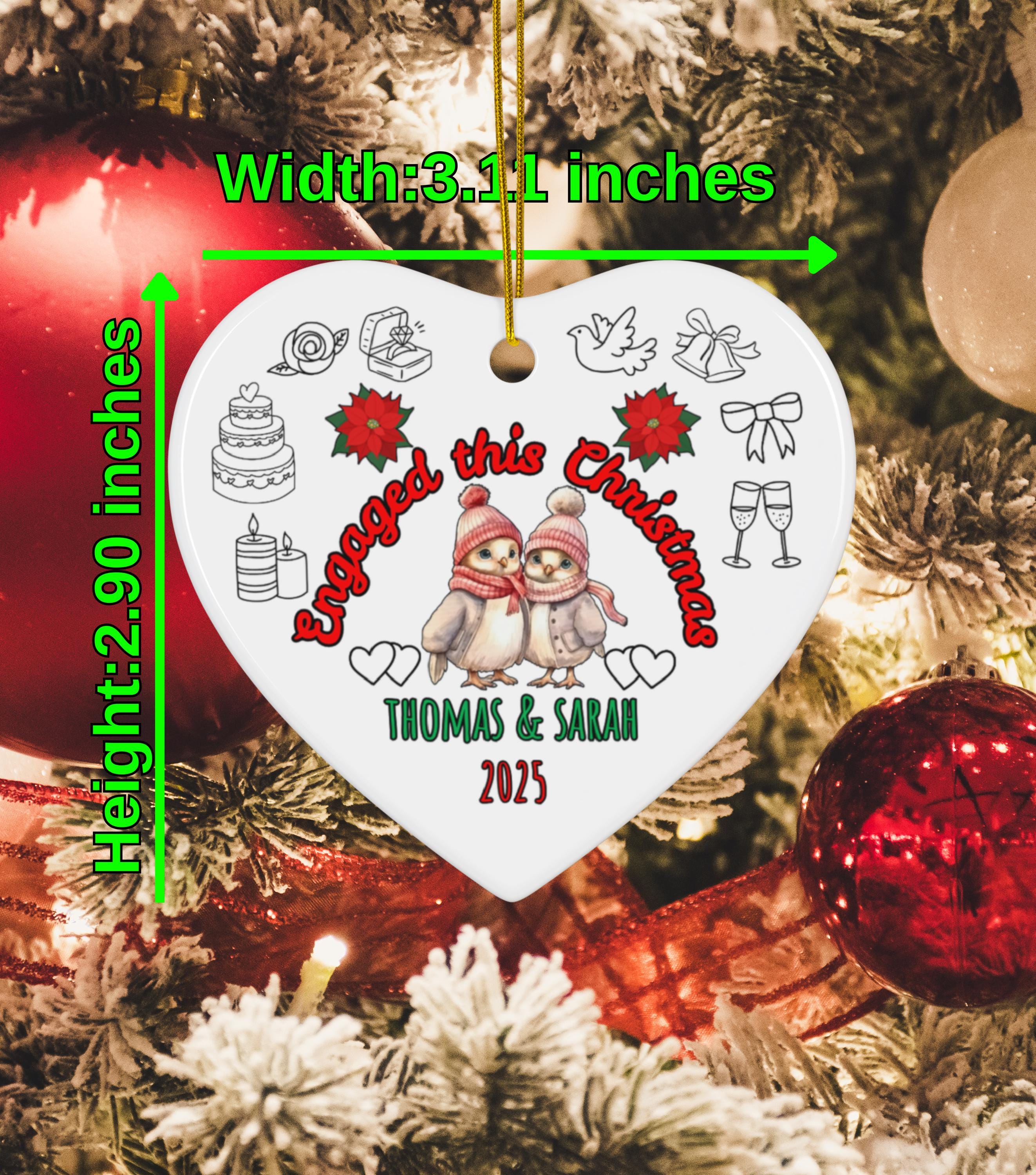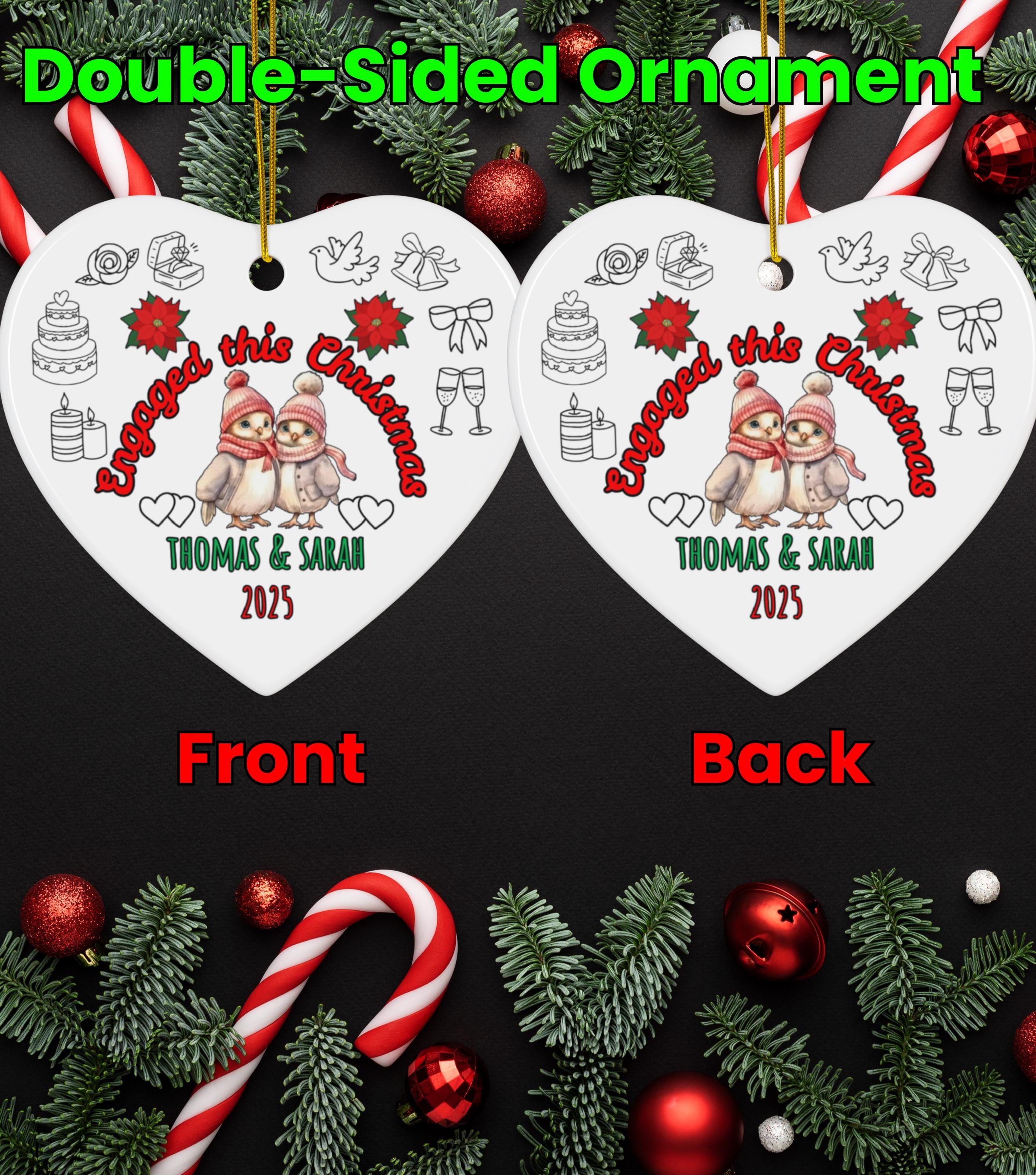Double-Sided Bird Couple Engagement Ornament, Heart-Shaped Personalized Bird Christmas Ornament, Engagement & Wedding Keepsake