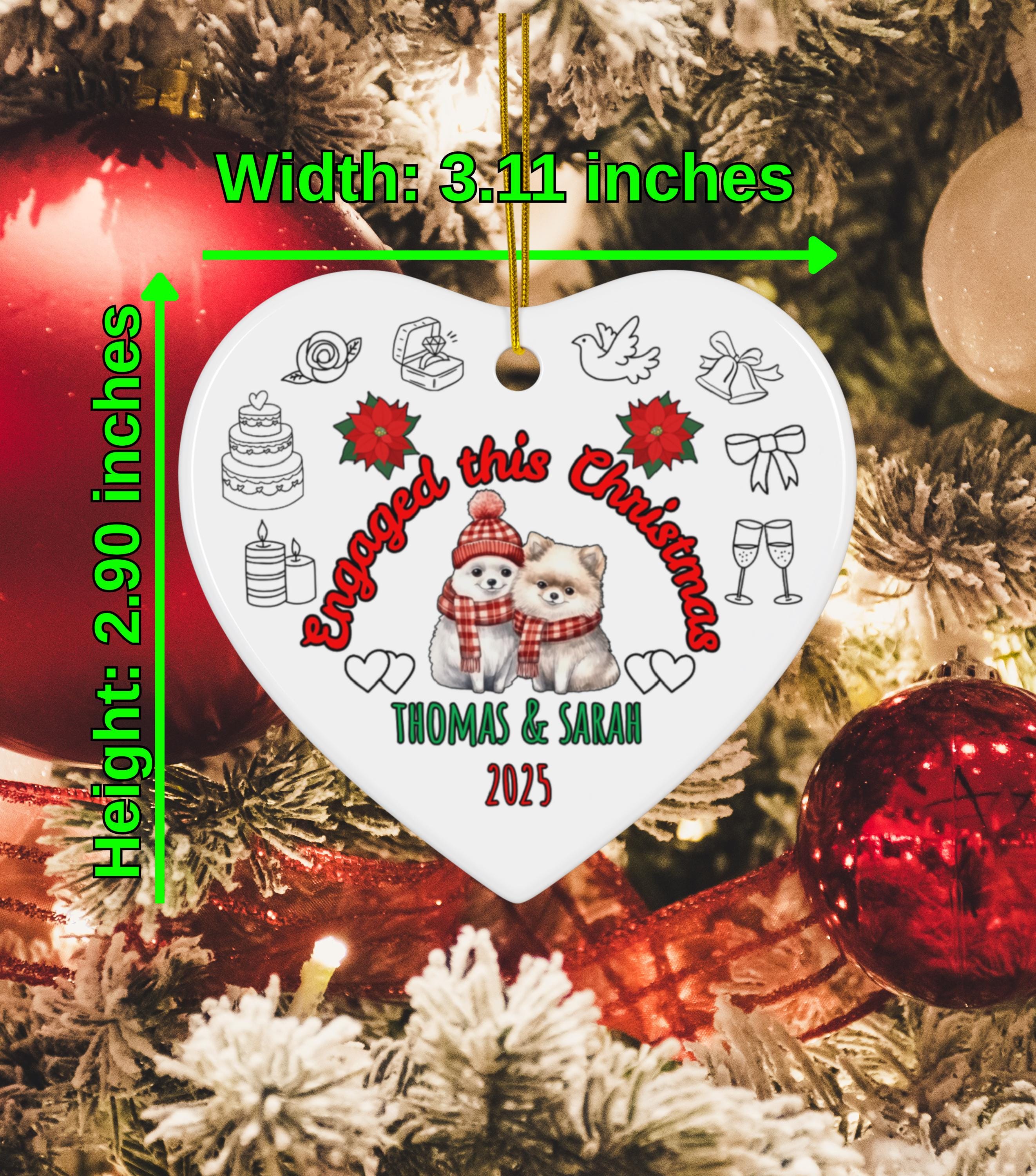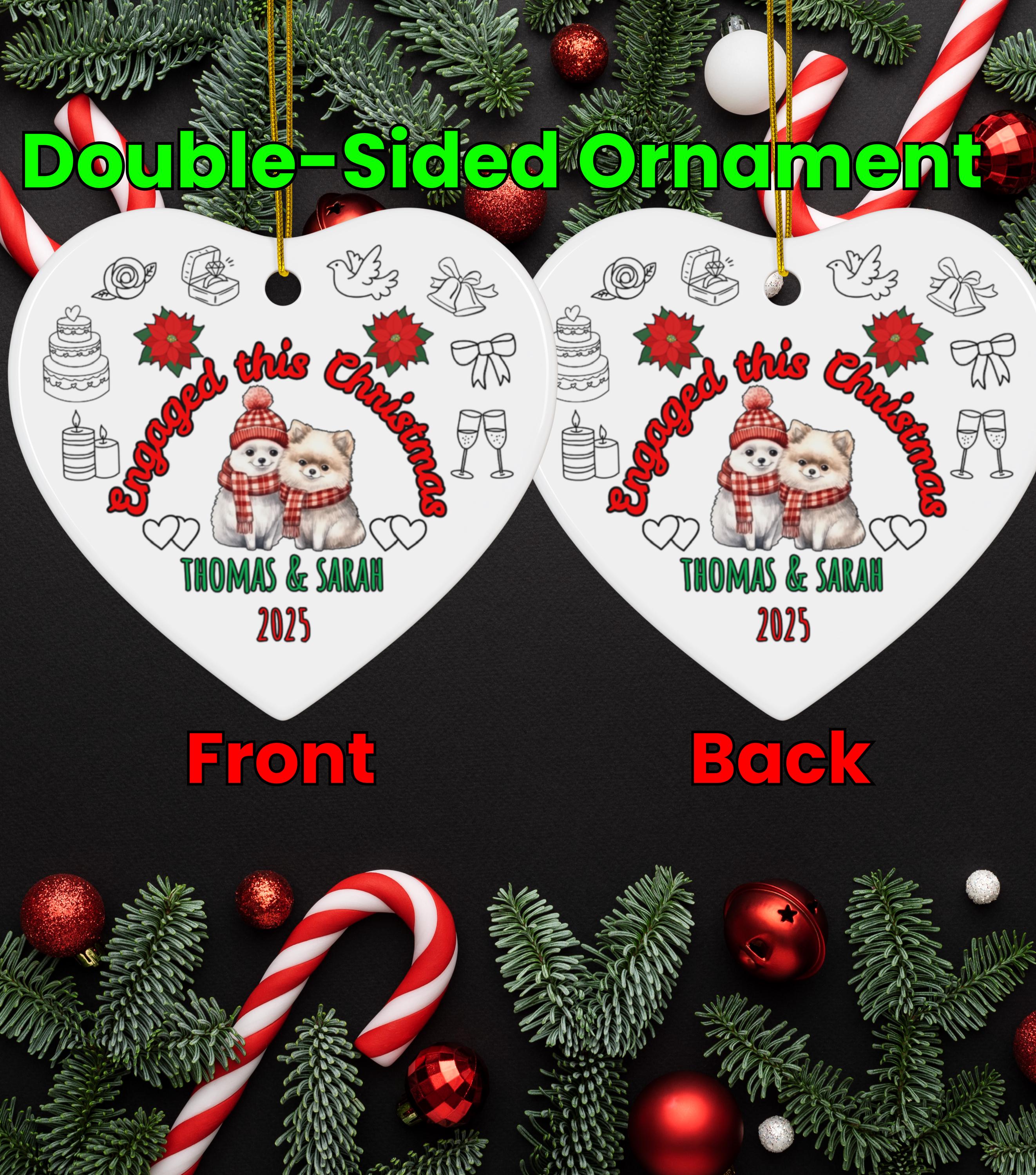 Double-Sided Dog Couple Engagement Ornament, Heart-Shaped Personalized Dog Christmas Ornament, Engagement & Wedding Keepsake