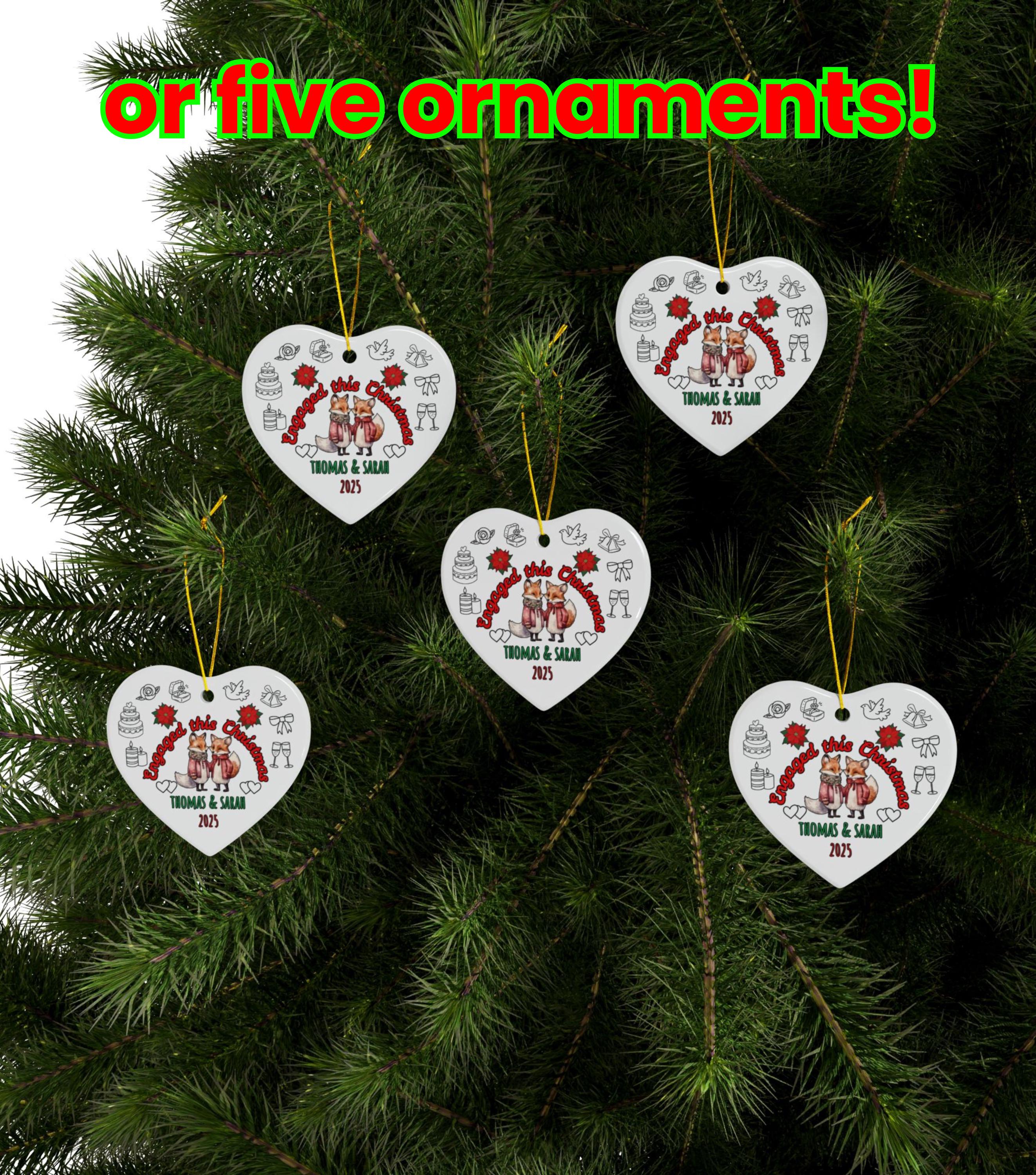 ✨ Bring a touch of woodland charm to the holidays with our Fox Couple heart-shaped ceramic ornament. Personalized with names and the year, this delightful double-sided design makes a thoughtful engagement, wedding, or anniversary gift. Perfect for holiday decorating or as a keepsake.