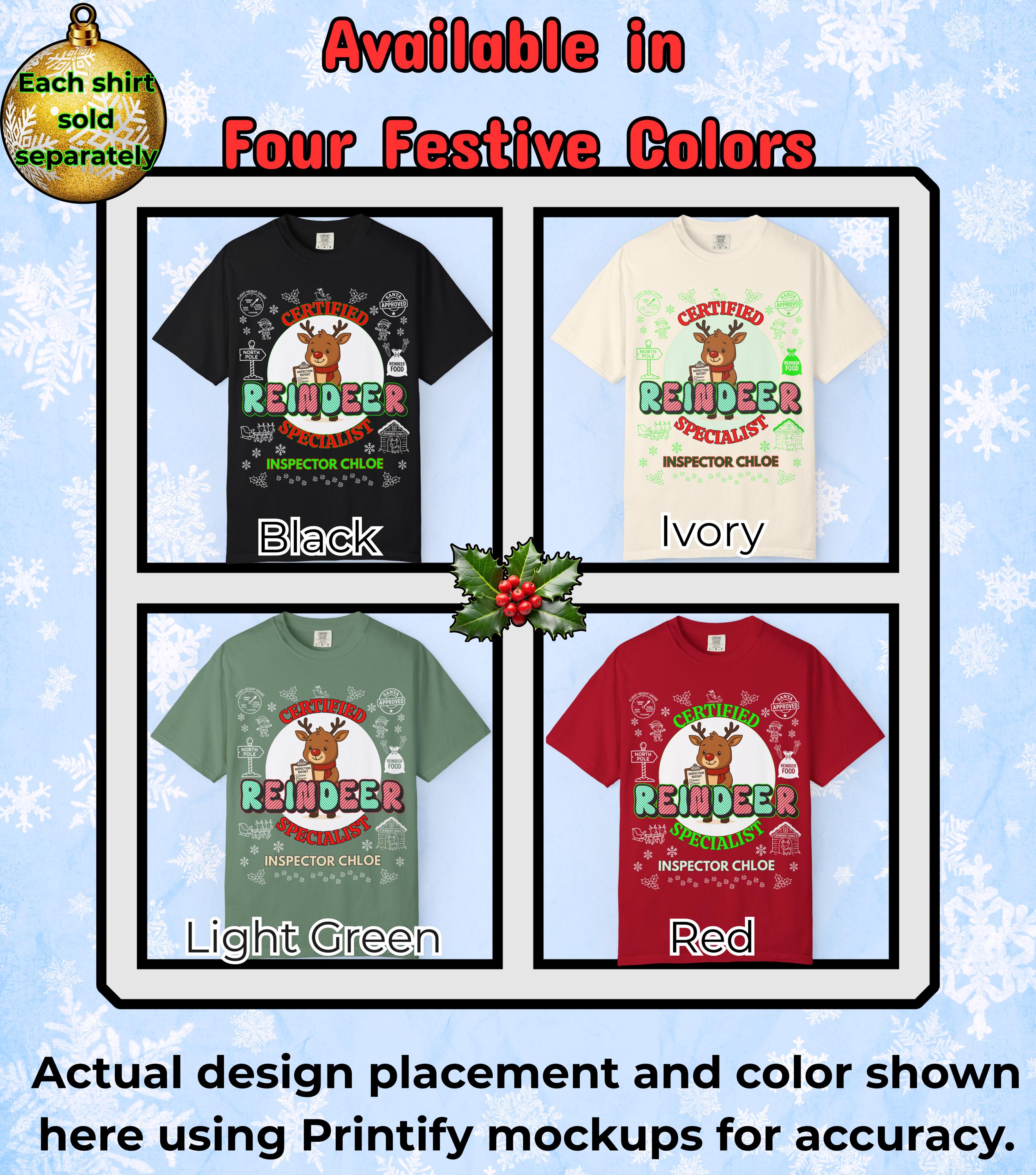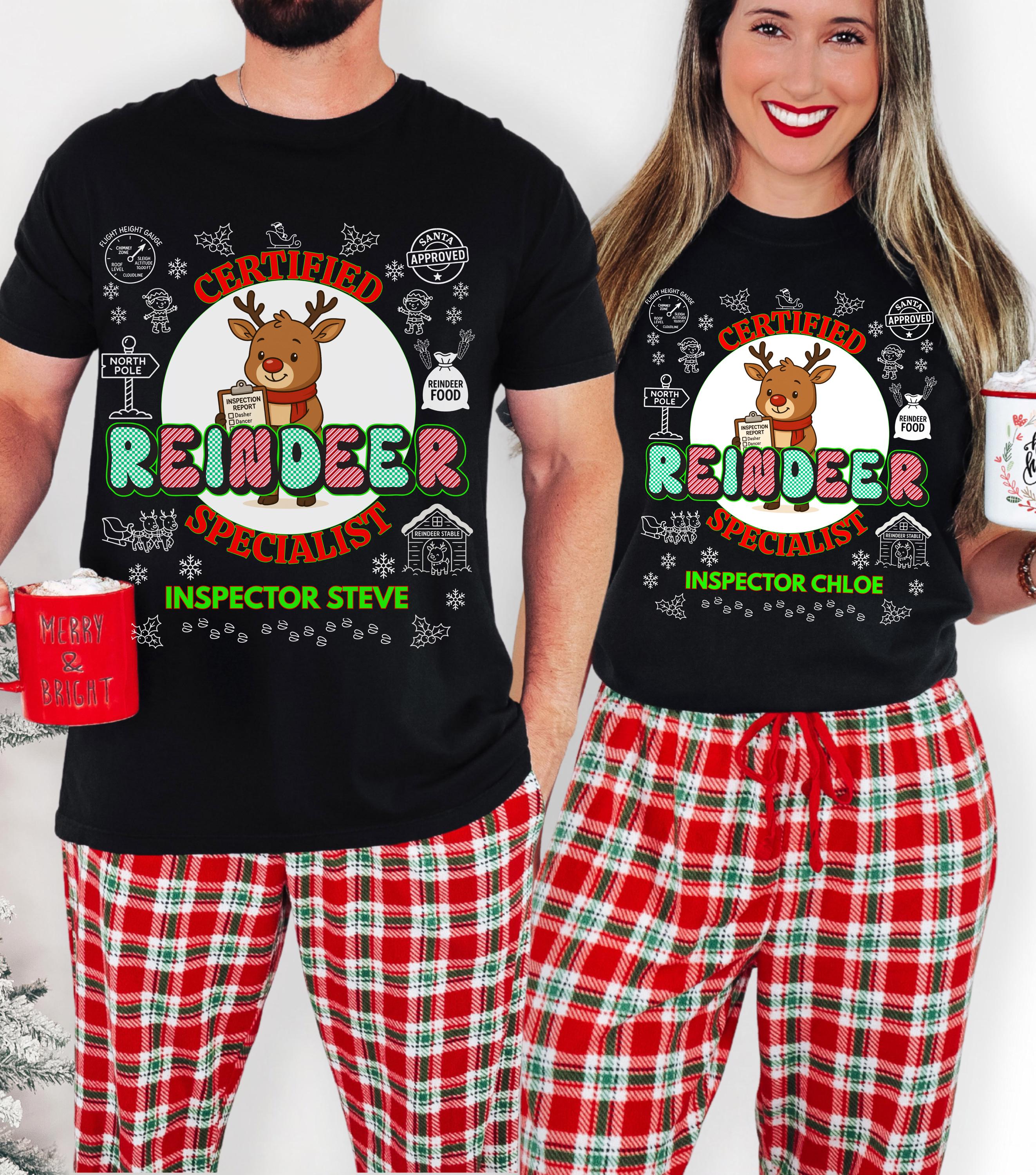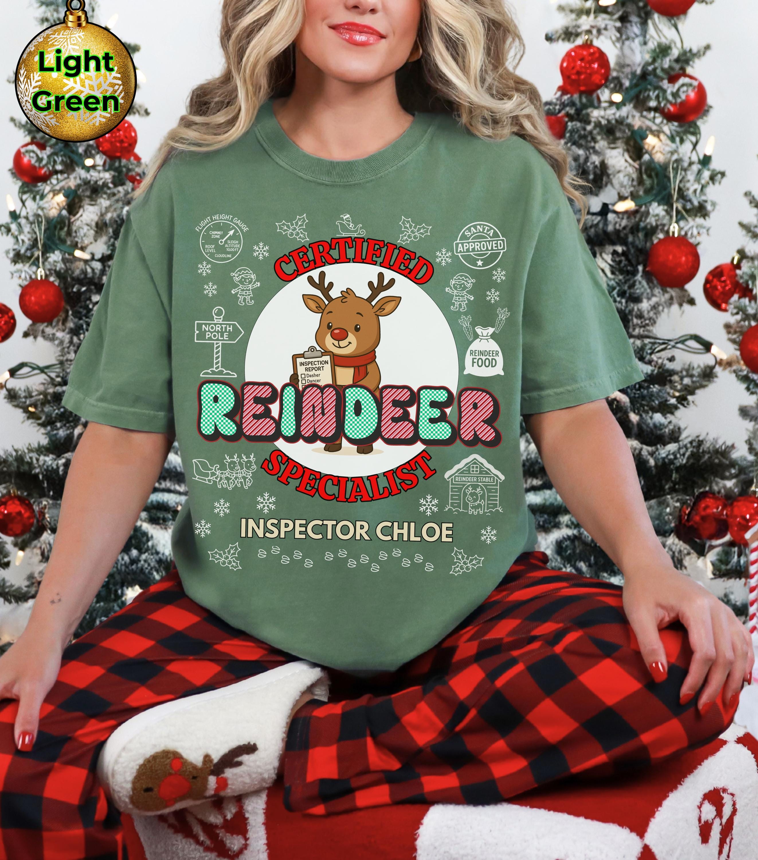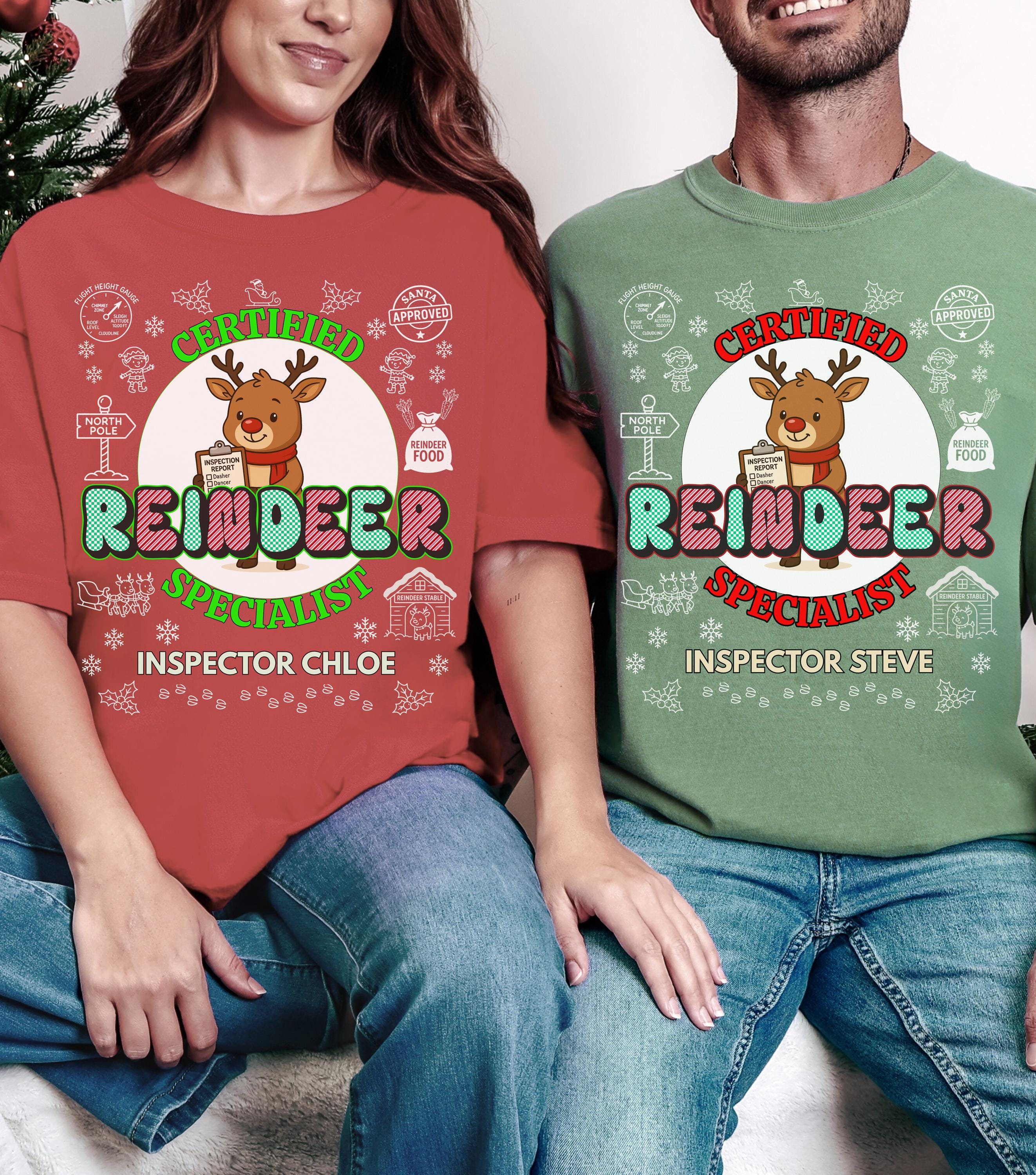 Certified Reindeer Specialist Shirt, Personalized Christmas Shirt, Matching Couples Family Holiday Tee, Comfort Colors Reindeer Inspector