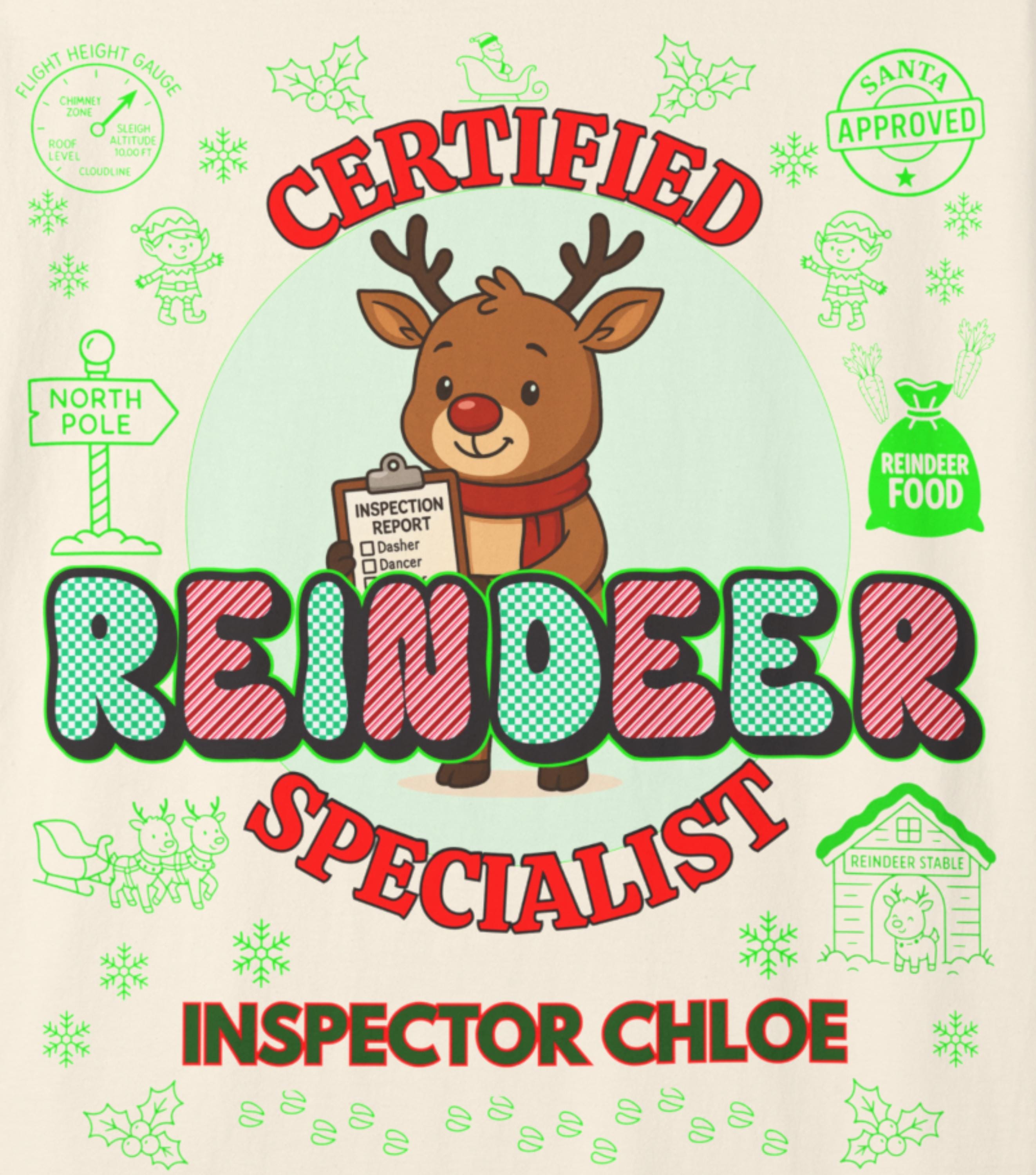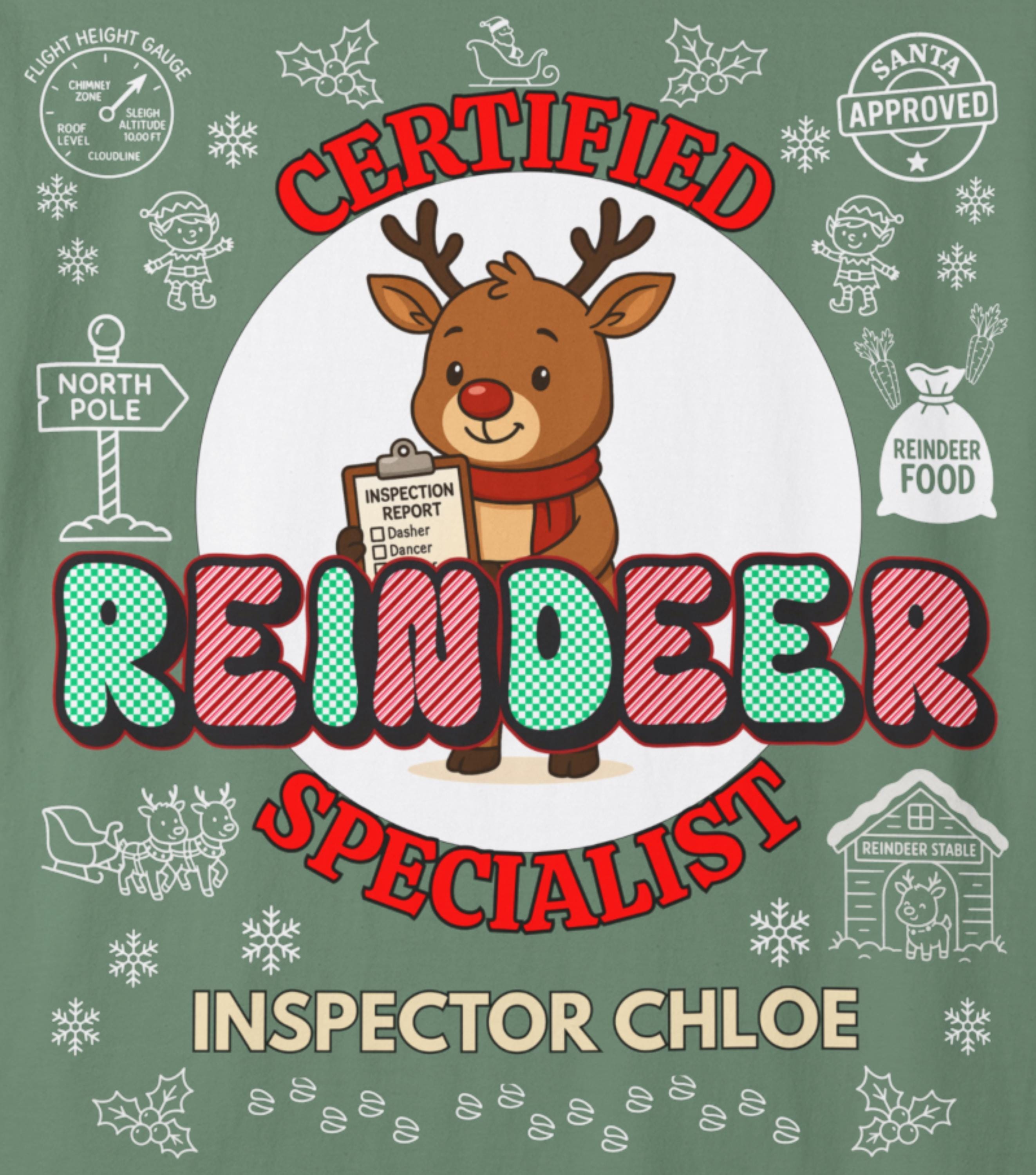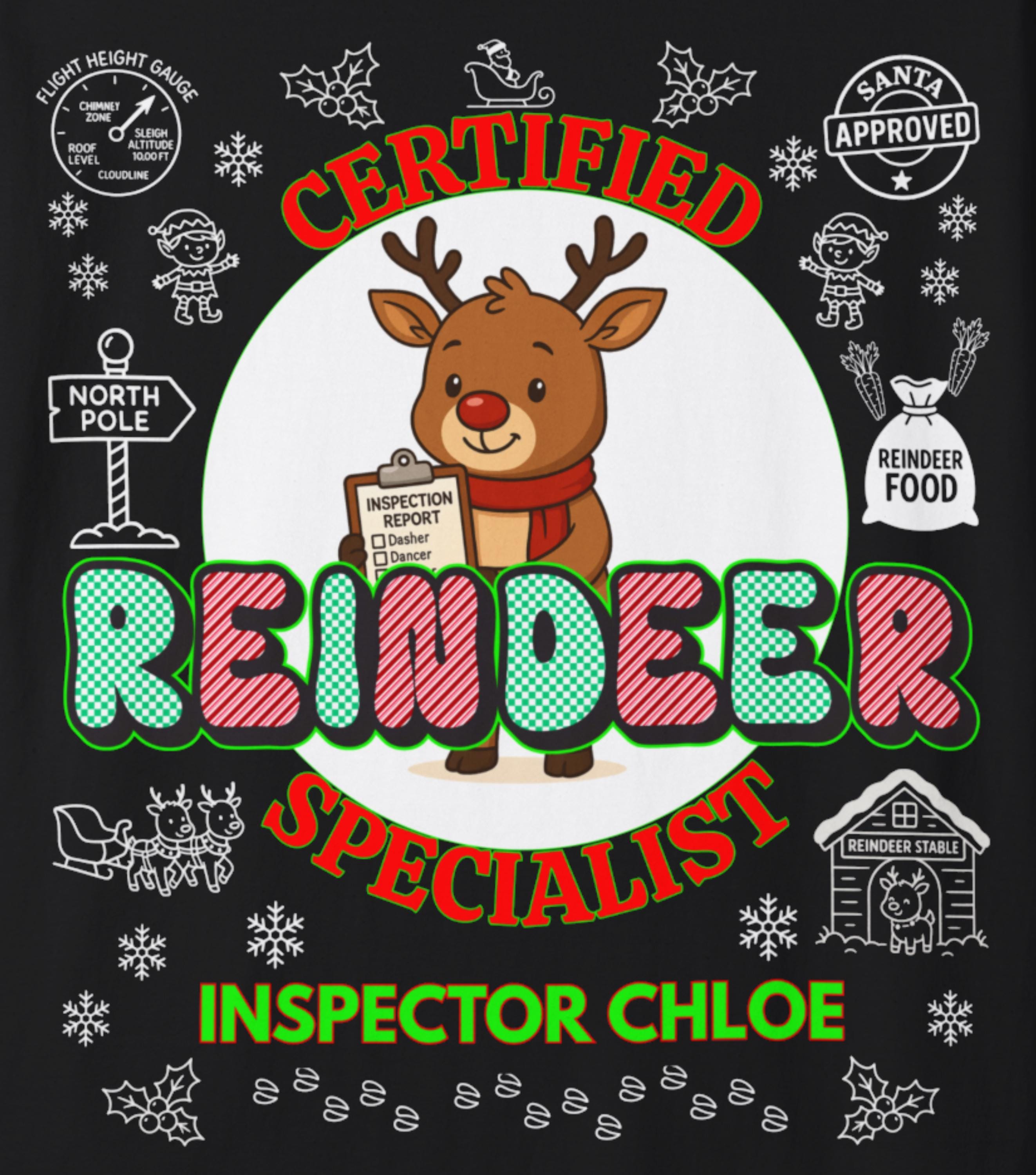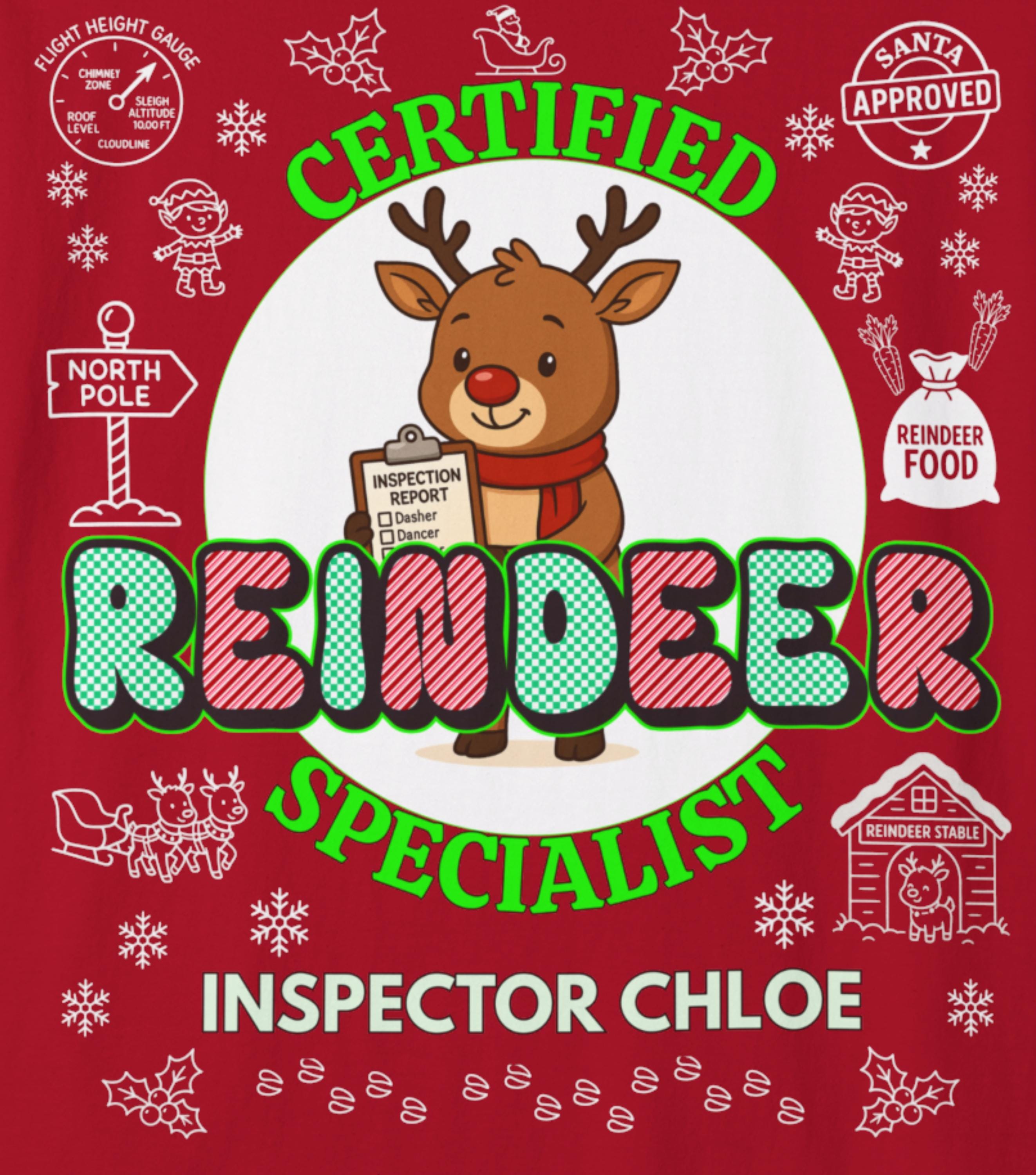 This adorable Certified Reindeer Specialist shirt is personalized with INSPECTOR + your chosen name, making it a fun and festive Christmas top for men, women, siblings, couples, friends, coworkers, or holiday parties.