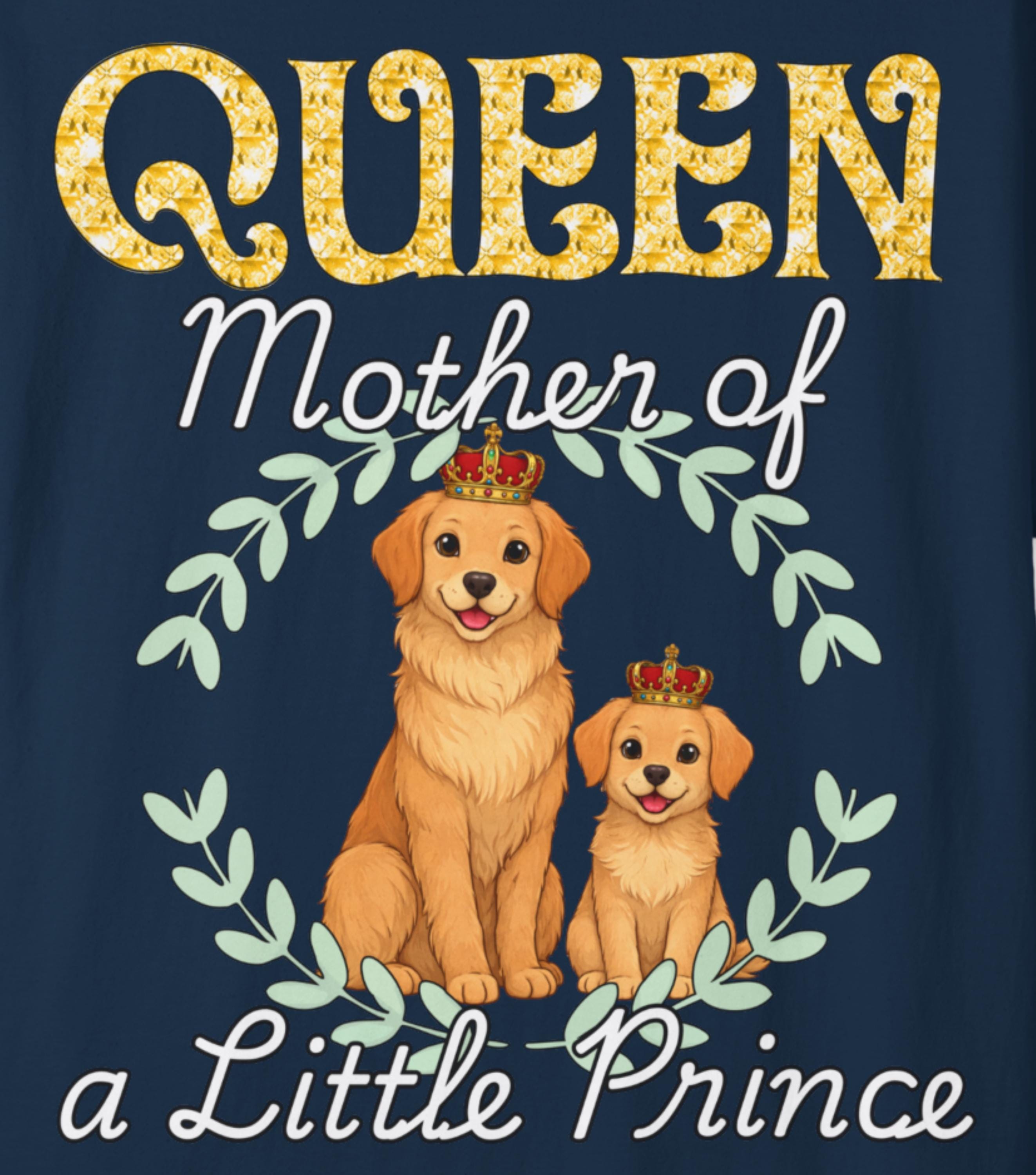 This “Queen Mother of a Little Prince” shirt features a crowned mother dog and her puppy, symbolizing the bond between a mother and her baby boy—wrapped in a timeless, storybook-inspired design. Thoughtfully illustrated and paired with elegant typography, this shirt is perfect for new moms, boy moms, and dog lovers alike.