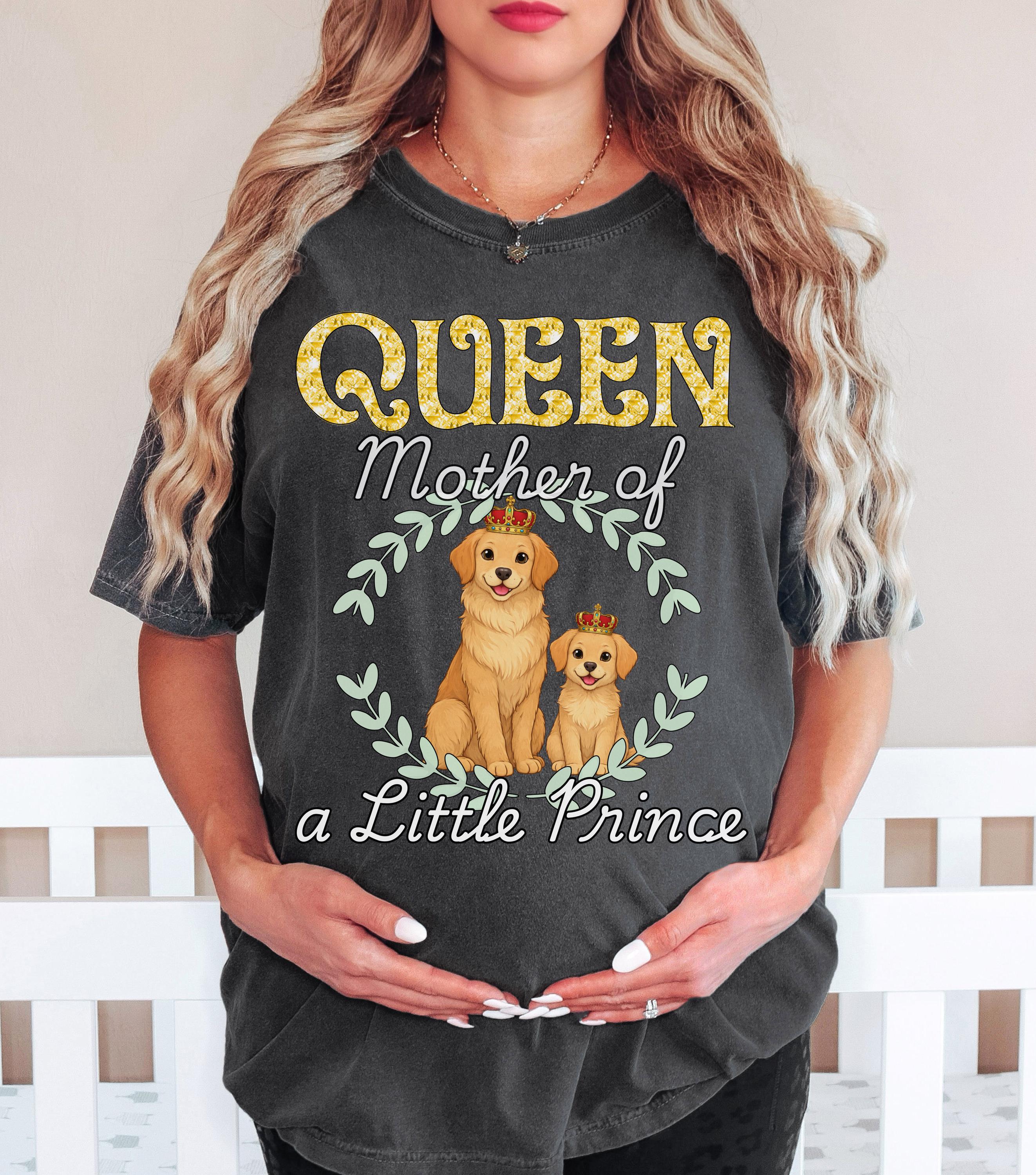 Queen Mother of a Little Prince Shirt, Dog Mom Tee, New Boy Mom Gift, Regal Motherhood Tee